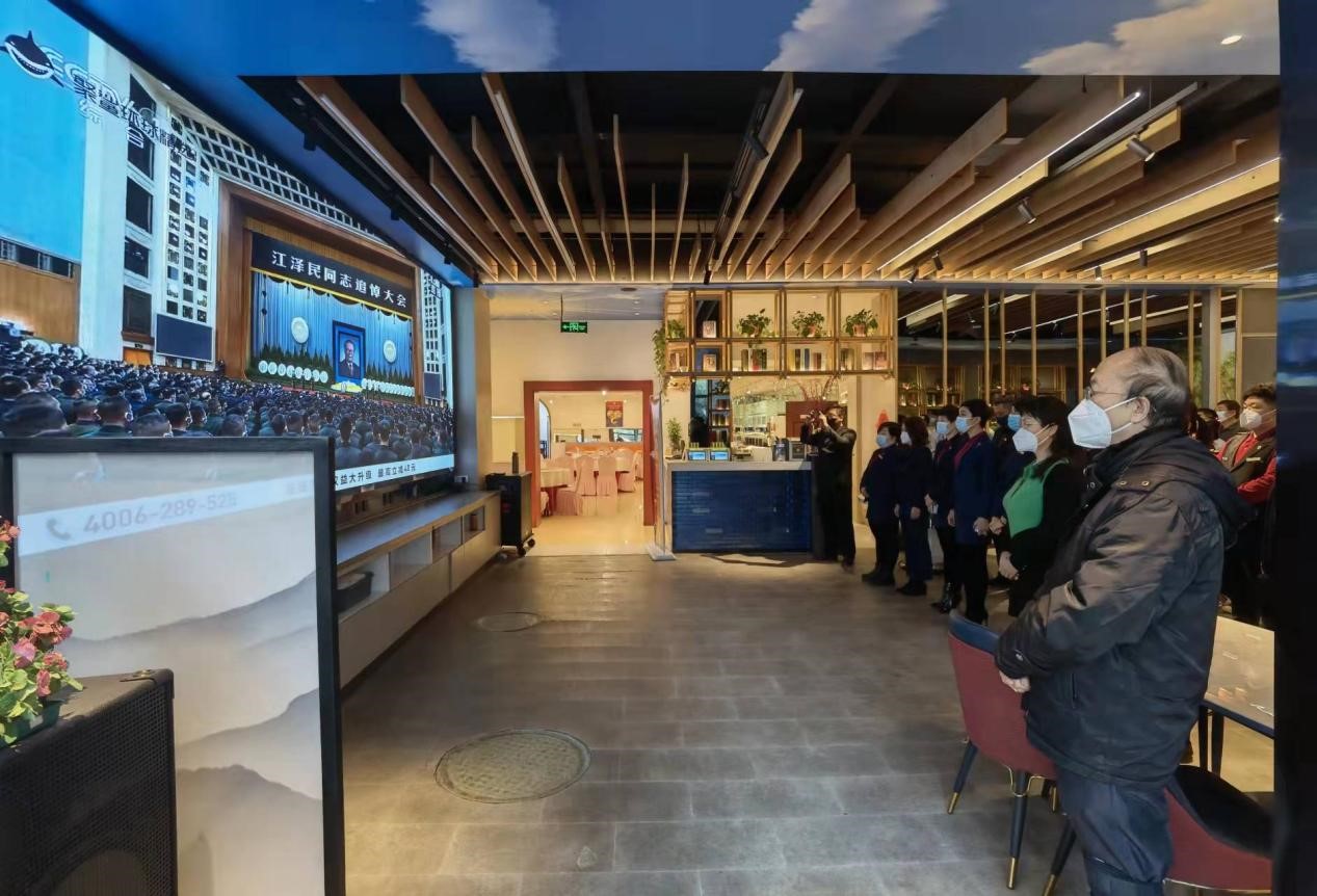 江泽民同志的英名、业绩、思想、风范将永载史册,世世代代铭刻在人民心中。我们要以习近平同志为核心的党中央坚强领导下,高举中国特色社会主义伟大旗帜,全面贯彻习近平新时代中国特色社会主义思想,弘扬伟大建党精神,坚定信心、同心同德,埋头苦干、奋勇前进,为全面建设社会主义现代化国家、全面推进中华民族伟大复兴而团结奋斗。