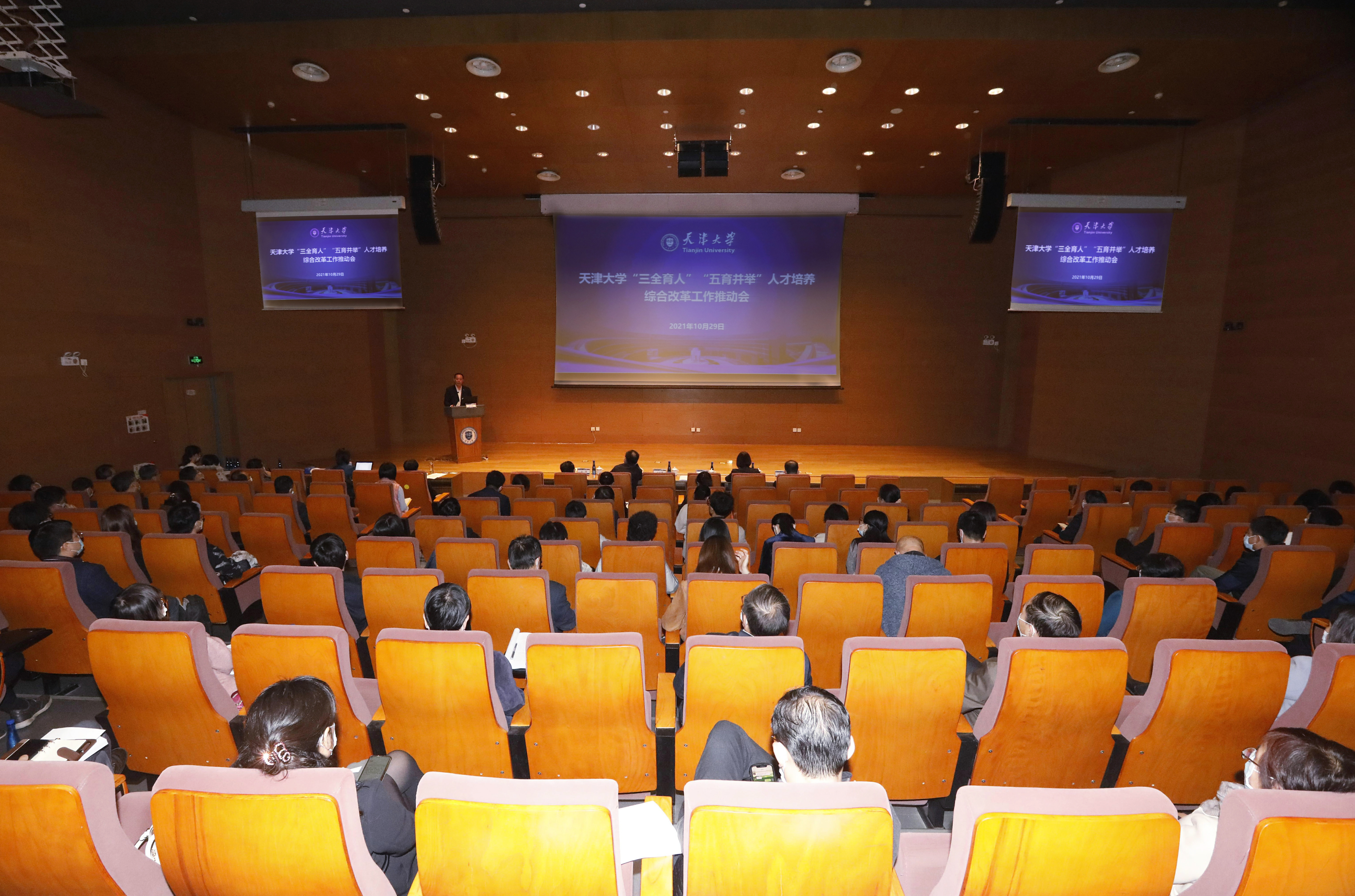 自2019年天津大学入选教育部“三全育人”综合改革试点单位、召开“三全育人”“五育并举”人才培养综合改革工作会议以来,学校从育人体系和工作机制两个维度,将“三全育人”“五育并举”有机融合,抓实顶层设计和统筹规划,着力构建育人“大格局”,抓牢重点环节,不断完善德智体美劳全面培养的育人体系,凝聚育人合力,持续建设全员全过程全方位育人工作机制,构筑起具有天大特色的“育人大厦”。