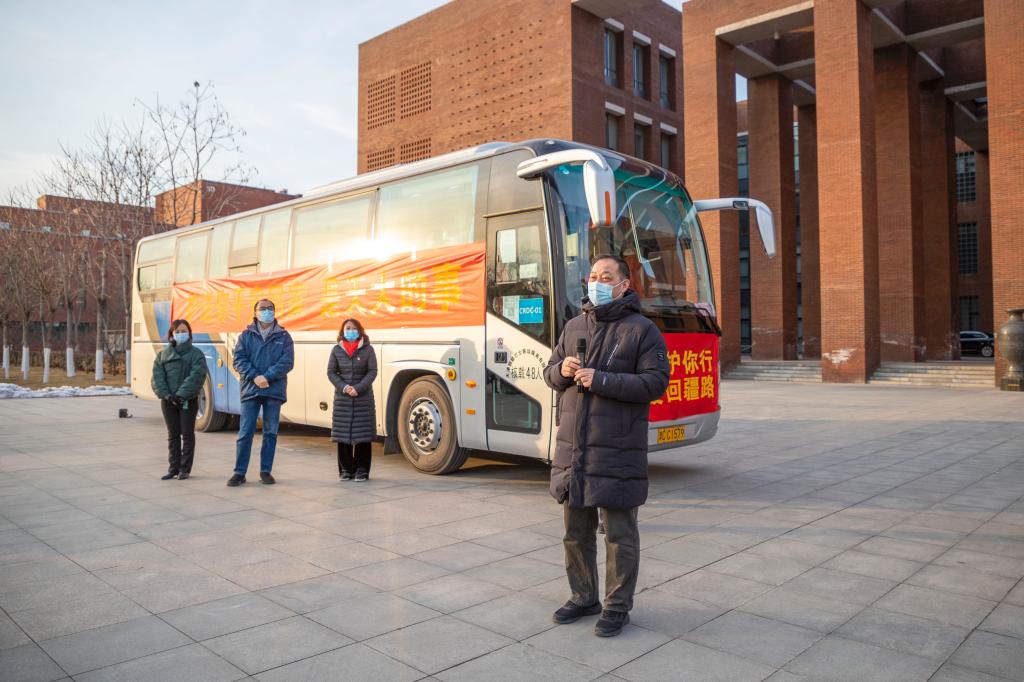 天津大学党委书记杨贤金也前来“话别”。他嘱咐学生说:“今天是个好日子,终于能离校返乡,与家人相聚了。感谢同学们过去半个月在‘疫情大考’中顾全大局,积极配合、担当奉献。学校非常关心每一位学子能否顺利启程,平安到家。在离别之际我想和同学们说两句话,第一句话让大家尽早平安返乡和家人团聚是我们天大的目标。我们深知每一位学生背后都有一个翘首企盼的家庭,所以我们要尽天大的努力护送同学们安全回家。时间仓促,未尽之处请大家多包涵。第二句话守望家国,共度时艰是我们天大人的担当与品格。希望同学们在返乡途中一定要听从指挥,积极配合各地的防疫规定,及时向学校反馈健康情况。保护好家人,守护好家乡,爱护我们的国家,在这关键时刻体现天大人的优秀品质。”