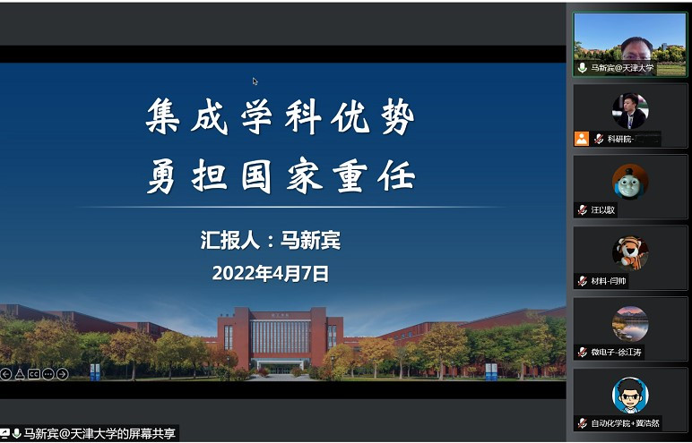 4月7日上午,主题为“国家重大科技计划项目的申请与培育”科技讲堂系列讲座以线上视频会议形式在“云端”举行。中国工程院院士、自动化学院院长王成山,化工学院院长马新宾受邀做专题报告。科研院全体工作人员,各学院(部)院长(主任)、分管科研工作的副院长(副主任)、学术带头人、国家级平台基地负责人及一线科研教师近500人参加会议。会议由科研院院长王天友主持。