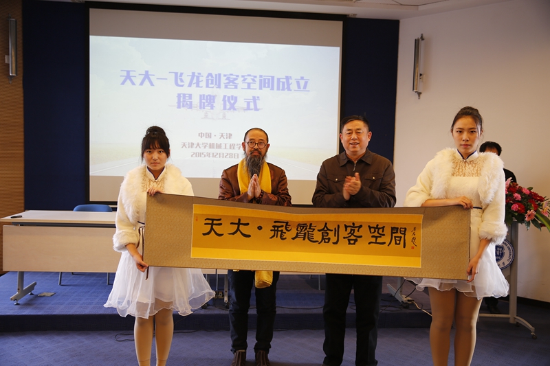揭牌仪式在卫津路校区会议楼第八会议室举行。此次北京飞龙天地集团公司与天津大学合作创建的天大——飞龙创客空间,依托于京津冀经济区创新设计产业联盟平台,由天津大学工业设计创新中心牵头,将借助天大的科研优势,围绕通用航空小飞机项目大力支持学生开展科研创新活动。 天津大学校长李家俊、党委副书记李义丹,