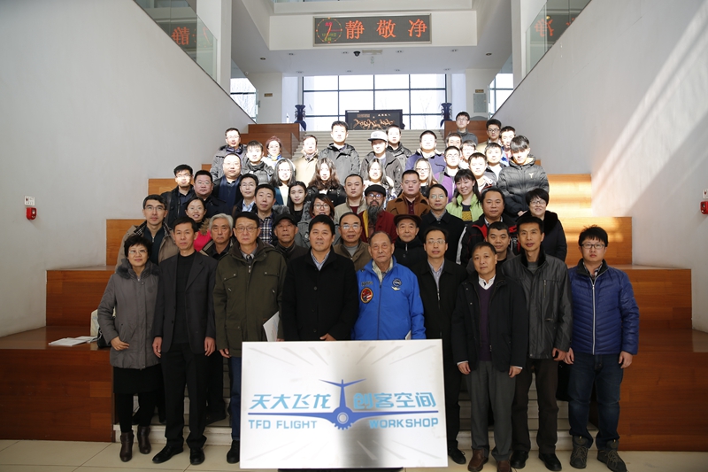 李家俊在揭牌仪式上说,聚集学校智力资源投身国家航空航天科研工作是天大义不容辞的责任,目前天大已经成立了航空航天研究院,并在国产C919大飞机的研制等工作中作出了自己的贡献,而飞龙创客空间也为激发学生对飞机设计制造的热情,从“小飞机”起步进行科研创新实践搭建了平台。“天大的学生们已经造出了自己的赛车并参加比赛,希望未来几年学生们也能造出自己的‘小飞机’。”高远洋与杜飞龙也分别发表讲话,对我国通航产业的发展前景作出了分析,并希望天大培养更多的优秀人才,并愿意今后与天大有更多的项目合作。揭牌仪式结束后,全体参会人员合影留念。