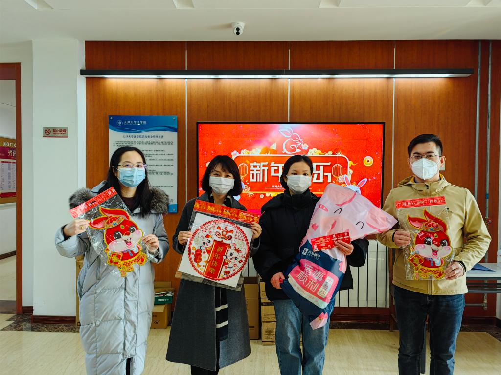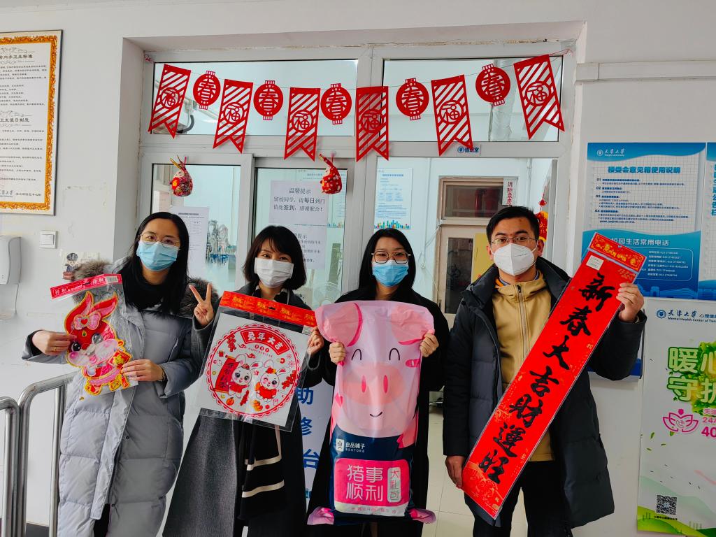 慰问过程中,杨漫路副书记与留校学生亲切交流,详细了解寒假留校学习科研和生活情况,询问学习和生活需求,嘱咐大家多与父母联系,注意合理作息和日常锻炼,做好健康防护,并为同学们送上了春节零食大礼包和兔年窗花、对联,祝福同学们在新的一年学业进步、身体健康。同学们对学院的关心和慰问表达感谢,表示会合理安排假期时间,利用假期积极提升自我。