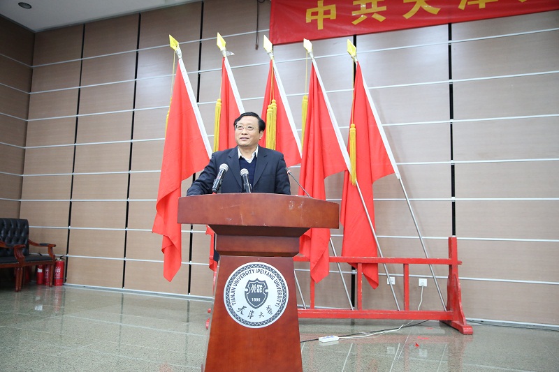 刘东志发表讲话,对中共天津大学化工学院第五届党委委员表示祝贺并提出殷切希望,希望中共化工学院党委要继续深入贯彻落实党的十八大精神,进一步解放思想、凝聚力量,团结带领全院党员和师生员工围绕中心工作齐心协力,为创建世界一流大学和一流化工学科而努力奋斗。