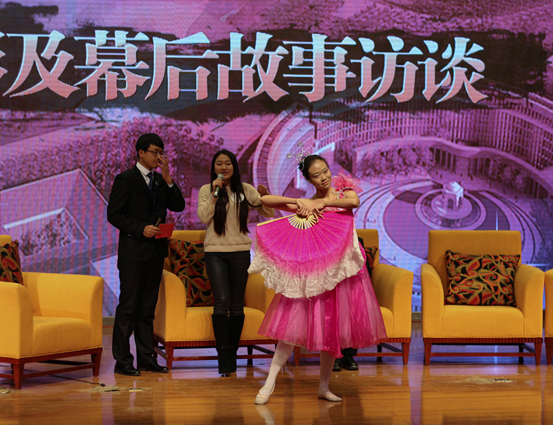 “《写意海棠》是我们的原创节目,之所以选择海棠花,是因为它可以作为天大的标志,我们团队希望可以把它搬上舞台。为了配合舞蹈,我们的服装、头饰、扇子都是经过精心设计的。舞蹈演员手中的扇子和屏幕上的花瓣相呼应,共同营造一个唯美的意境。”