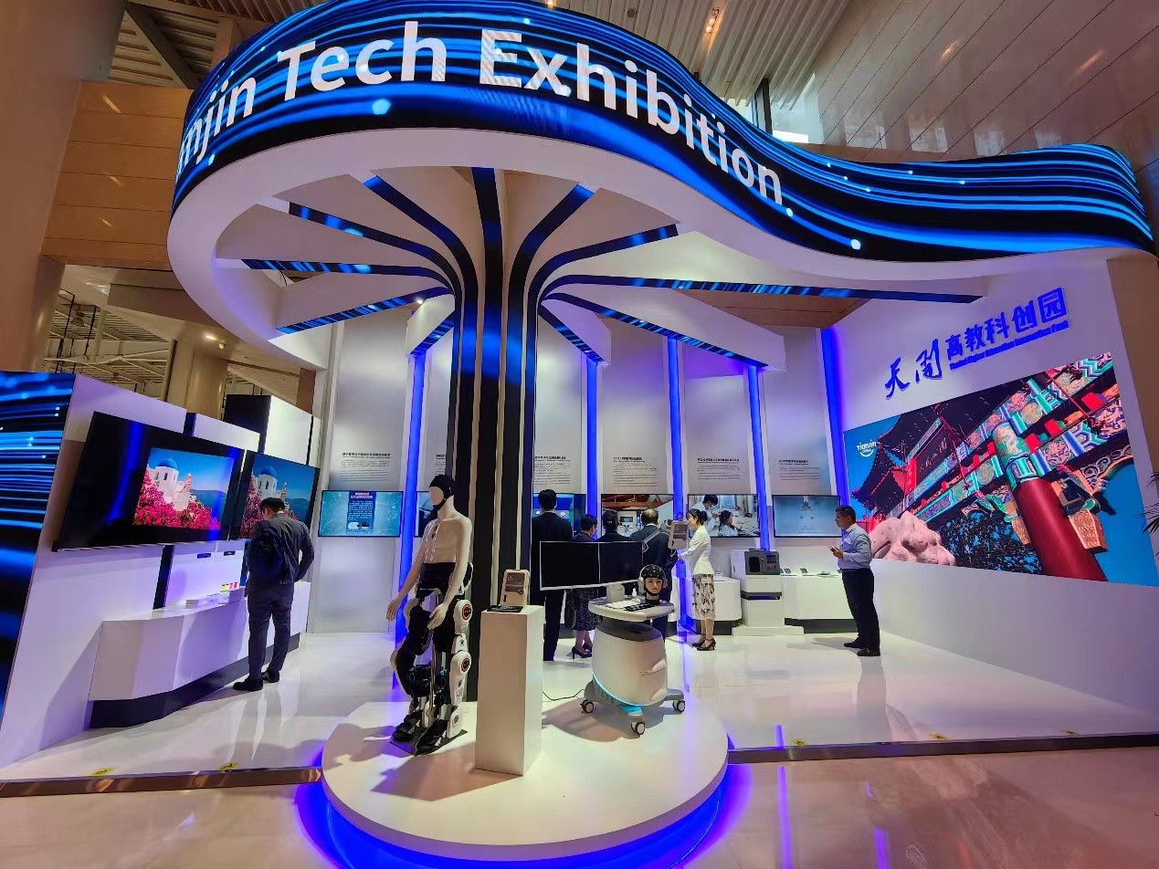 展台中,天津大学神工·全球首款人工神经康复机器人系统格外醒目。天津大学神经工程团队依据神经可塑性机制,面向肢体运动功能障碍患者,研发了基于脑机接口技术的“神工”康复机器人。该系统可精确解码患者运动意图,并传输给外部反馈设备,从而形成脑-机-体的闭环通路,有效解决了传统康复中主动性较差,治疗周期长等问题。目前,该系统多项成果已在多家医院开展临床研究,效果显著。脑机助行系统,世界首款神经调控式机械外骨骼系统,用于下肢运动功能障碍患者的神经功能康复。国内首款抑郁症智能诊断机器人“神工-神心” 通过解码脑活动,可实现对抑郁症的定量评估。国产采集芯片“脑语者”是世界首款脑机接口专用编解码芯片,实现精解码、高指令、快通讯、强交互,拥有完全自主的知识产权;脑控微信操作系统,面向严重手功能障碍患者,可实现微信全功能使用。