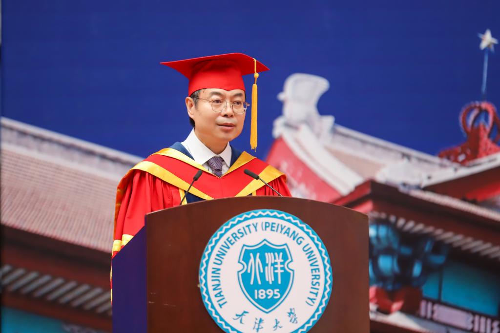 同学们,今天,你们能够站在这里,意味着你们经历了蚕蛹化蝶的蜕变,已成长为顶天立地的天大人。未来,你们站立的地方,就代表着天大,你们的一言一行,就代表着天大人。从现在起,你们就要致力于成为服务世界、奉献国家、守护家庭的天大人。4年前,我希望你们在大学期间能够立德修身、勤奋求知、躬身实践、学会相处。今天,我想亲耳听到你们说:我做到了!