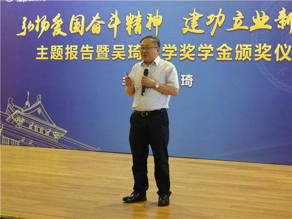 本站讯 9月16日下午,天津大学大学生活动中心报告厅中坐满了2020级新生,参加“弘扬爱国奋斗精神,建功立业新时代”主题报告,共同聆听天津市新冠肺炎市级医疗救治专家组组长、天津大学海河医院首席专家、医学部临床医学院院长吴琦讲授自己参与新冠疫情防控工作的难忘经历和深刻感受。
