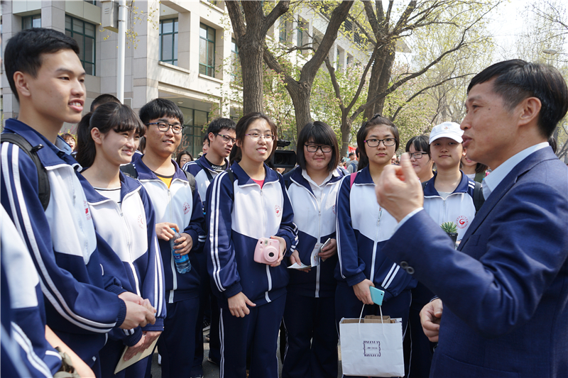 校长钟登华与天津市第100中学学生交谈 宋雪峰摄