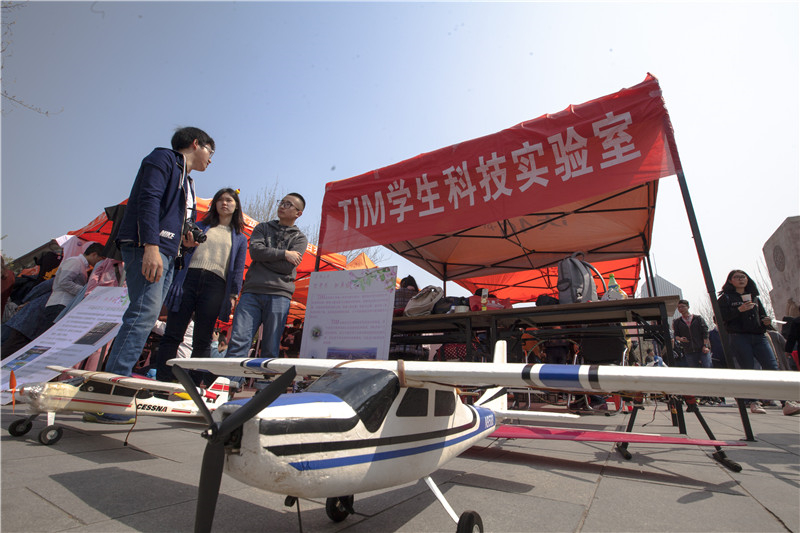 游客参观天津大学科技成就展 王建泽摄
