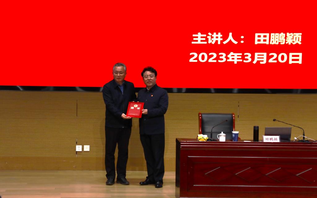 学校特聘任田鹏颖教授为天津大学思想政治理论课特聘教授,校党委常委、副校长郑刚代表学校为田鹏颖教授颁发了“思想政治理论课特聘教授”聘任证书。