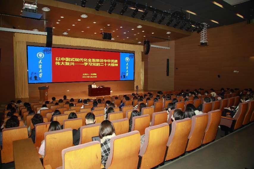 本站讯(通讯员 陈思 摄影 郭程)3月20日下午,我校举办党的二十大精神理论辅导报告会。东北大学马克思主义学院院长田鹏颖教授作《以中国式现代化全面推进中华民族伟大复兴——学习党的二十大精神》理论辅导报告。
