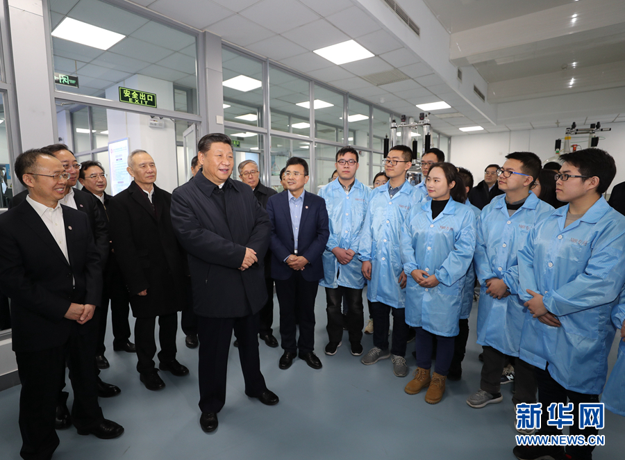 1月16日至18日,中共中央总书记、国家主席、中央军委主席习近平在京津冀考察,主持召开京津冀协同发展座谈会并发表重要讲话。这是1月17日上午,习近平在天津南开大学元素有机化学国家重点实验室同师生亲切交流。 新华社记者 丁林 摄