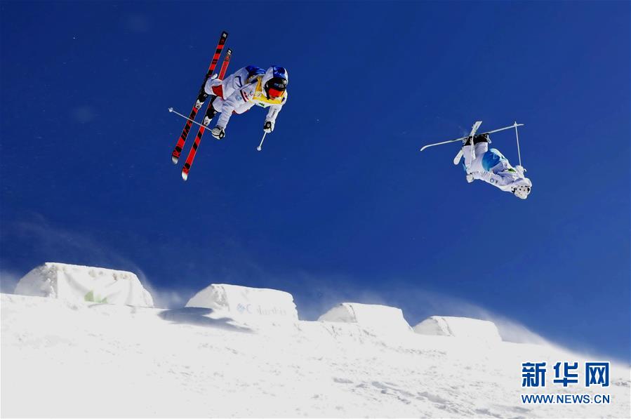 运动员在河北张家口市崇礼区太舞滑雪场参加自由式滑雪雪上技巧世界杯比赛(2018年12月16日摄)。新华社记者 杨世尧 摄