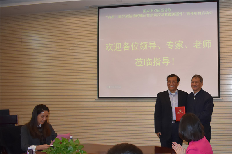本站讯(通讯员 王守栋 陈龙)11月14日,由天津大学牵头,联合中国科学院半导体研究所、上海交通大学共同承担的国家重点研发计划“纳米科技”重点专项“有机二维异质结构的输运性质调控及其微纳器件”青年项目启动会暨实施方案论证会在天津大学卫津路校区第三教学楼会议室召开。科技部高技术中心处长闫金定,中国科学院化学研究所院士刘云圻,天津大学党委副书记、副校长刘东志,天津大学理学院院长卢小泉,天津大学财务处副处长魏欣以及项目专家组成员、项目承担单位代表等20余人出席会议。项目启动会由天津大学科研院副院长符银丹主持。