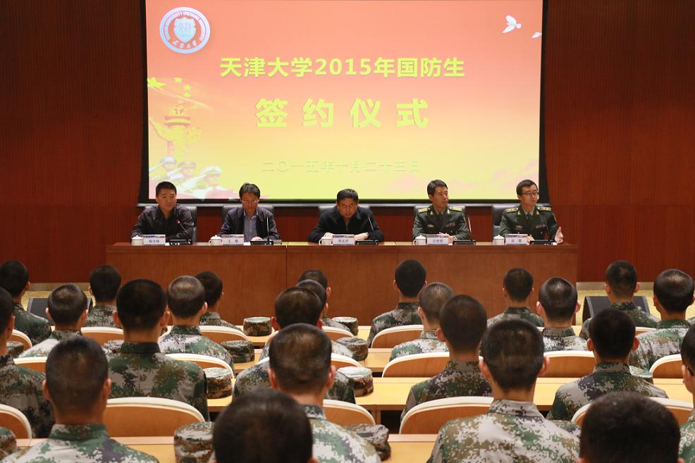 本站讯(通讯员 朱丙锋)10月23日下午,天津大学2015年国防生签约仪式在北洋园校区举行,学校党委副书记李义丹、学生工作部部长王寒、总后驻南开大学天津大学选培办主任汪命锁等参加了仪式。仪式由学工部副部长、武装部部长柳丰林主持。