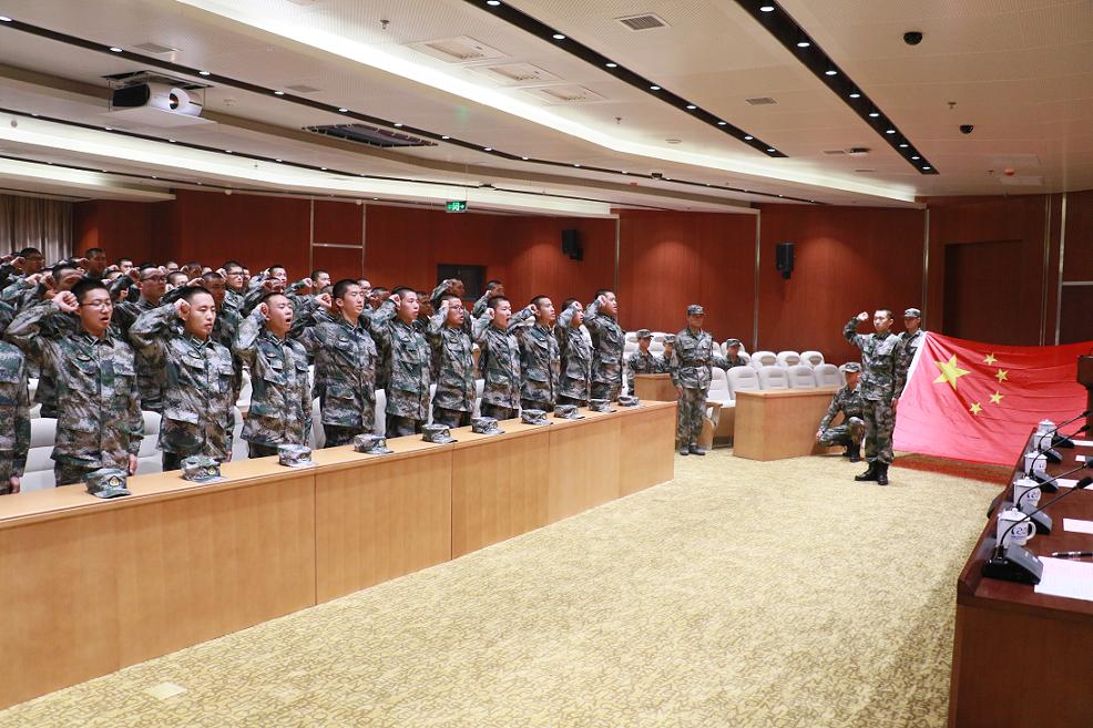 仪式上,选培办吴雷干事宣读了总后勤部政治部的两份批复,共69名学生被批准成为国防生。随后69名国防生在《国防生培养协议书》上郑重按下红色手印,并共同面对国旗庄严宣誓。