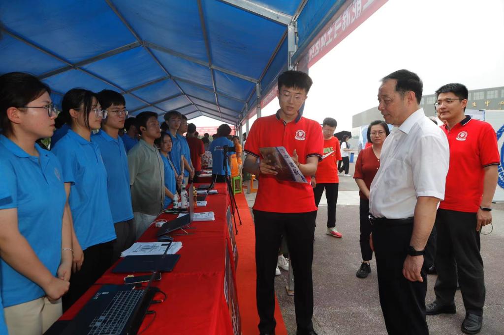 在北洋园校区,杨贤金在太雷广场逐个视察各学院新生报到情况。在数学学院迎新报到点,他详细询问了新生报到进展情况,并与数学学院天麟班新生亲切交流,他嘱托新生,大学期间,要养成多读书,读好书的习惯。在校园生活中,多走出寝室,多从事体育运动,强健体魄。“你是从哪个省份考到天大来的?”“入学体验怎么样?”……在未来技术学院报到点,杨贤金与新生于昊然亲切交谈,当得知新生同学对整个报到流程体验非常满意,对未来充满期待后,他勉励于昊然,要珍惜大学时光,努力成长成才,并祝愿他能在天大度过四年美好的大学生活。在智算学部迎新报到点,杨贤金收到了学生志愿者为他创作的个人漫画头像,在迎新报到过程中,智算学部志愿者们为每位入学新生都创作了个人专属漫画头像。