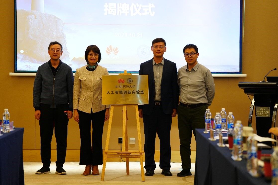 本站讯 日前,华为-天津大学人工智能创新实验室揭牌成立,并召开实验室技术委员会议。华为北京研究所所长姜向中、华为诺亚方舟实验室主任姚骏,天津大学党委副书记雷鸣、天津大学智算学部主任李克秋出席并为实验室揭牌。