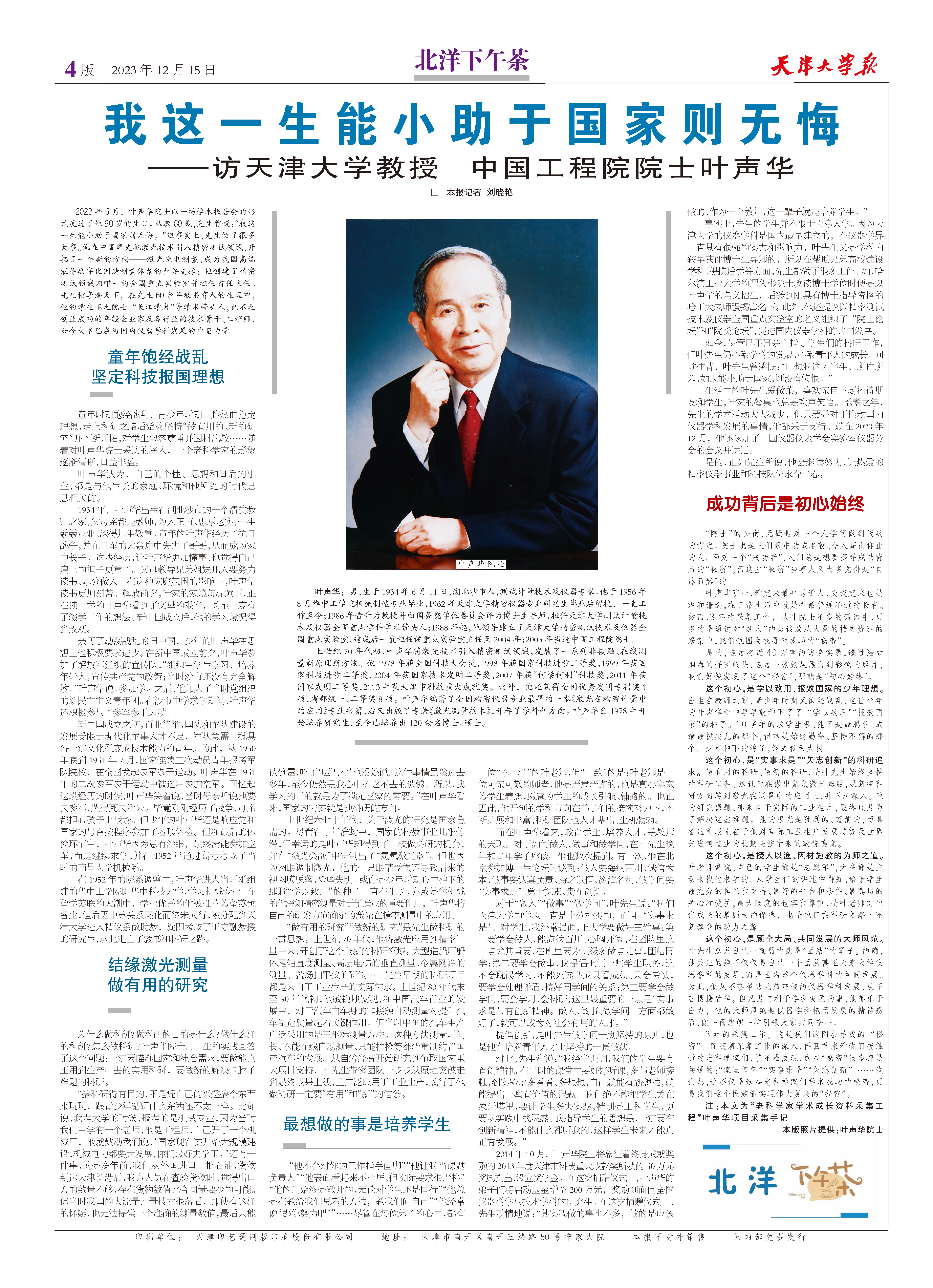 ●我这一生能小助于国家则无悔——访天津大学教授 中国工程院院士叶声华