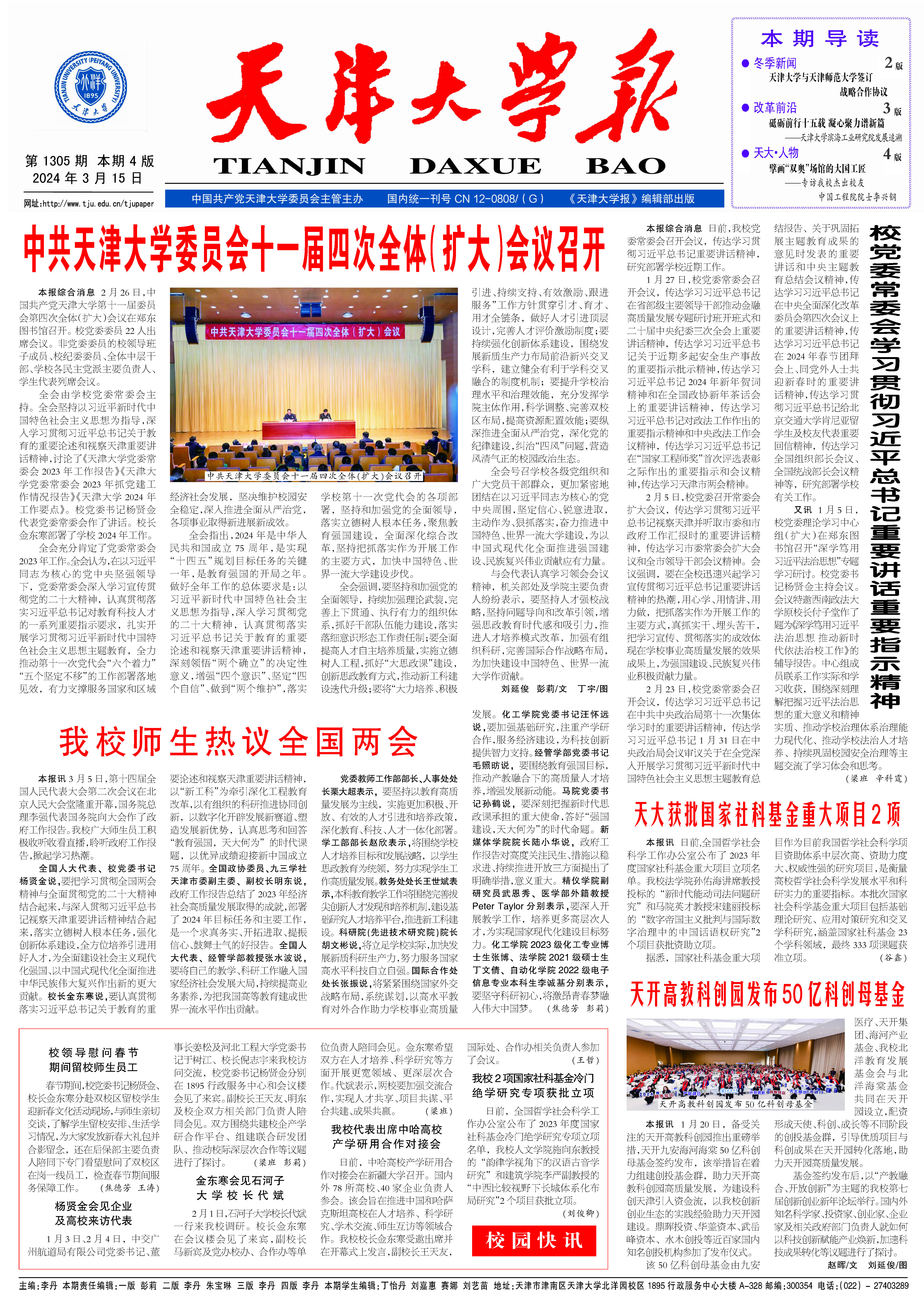 ●中共天津大学委员会十一届四次全体(扩大)会议召开