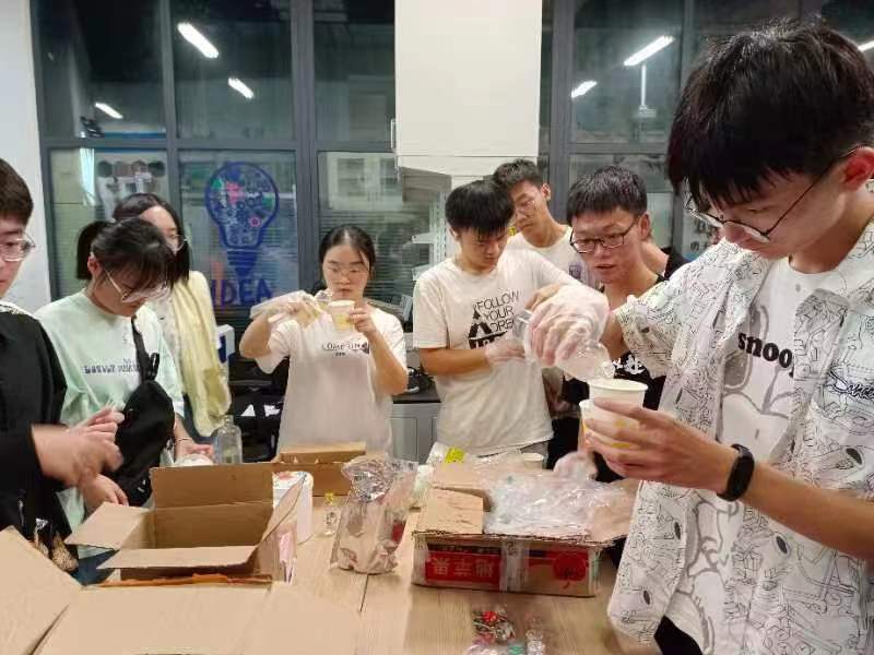 党团联动,材料学院本科生第一党支部与22级本科新生共唱校歌,重温红色经典;学生党校组织红色观影、红色宣讲,并通过红色剧本杀创新形式,带着同学们沉浸式领悟先辈革命精神;科协组织“初心不改,凝固精彩”水晶滴胶创意工坊,通过精细配比、细心点缀、巧妙搭配,同学们将无限想象力加入水晶滴胶,凝固成一系列精彩作品;材料先锋收集同学心愿,通过文字传递对祖国和学校的千言万语,以青春的名义,与祖国共成长;文艺协会与书院携手,材料学子共赴游园之约,风“谜”北洋、射礼天材、同心连环、情牵祖国、击鼓贺庆……此外,学院还集中开展了宿舍评比、团日活动、心理素拓、读书交流等班团活动。双庆系列活动覆盖材料学院全体同学,在符合疫情防控要求的情况下,活动现场座无虚席,同学们度过一个充实又有意义的假期,校庆遇国庆,材子遇欢腾!