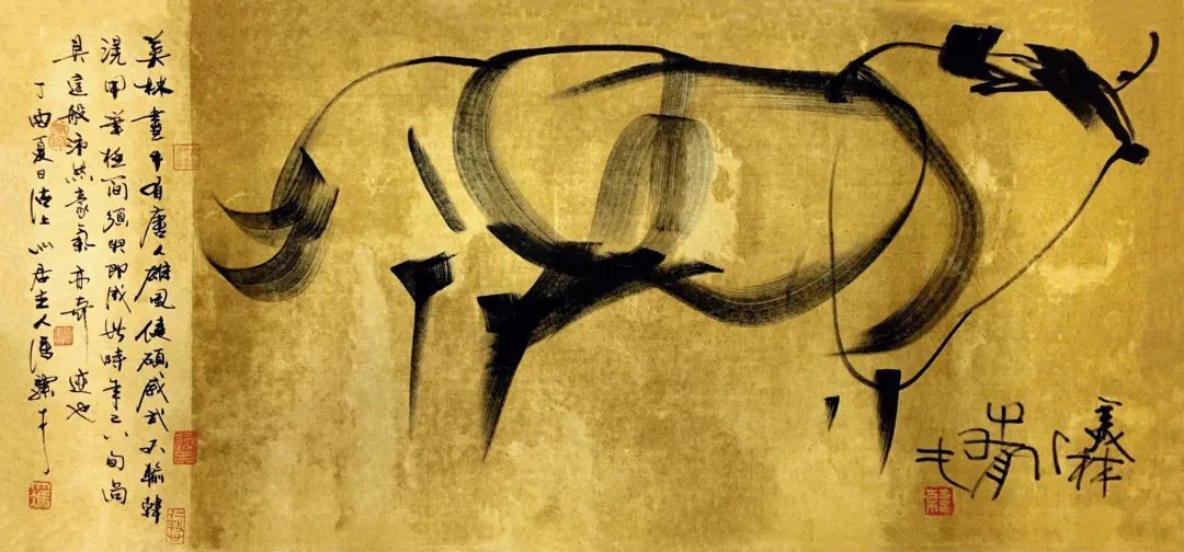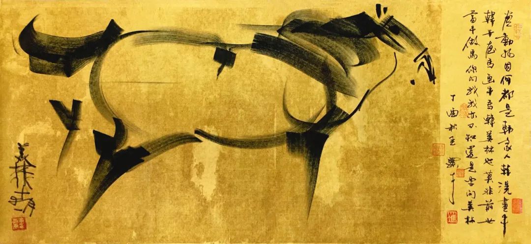 美林的画太具个性,牛性强犟,马性奔放,韩美林天性奔放又强犟,故其最爱画牛马是也。