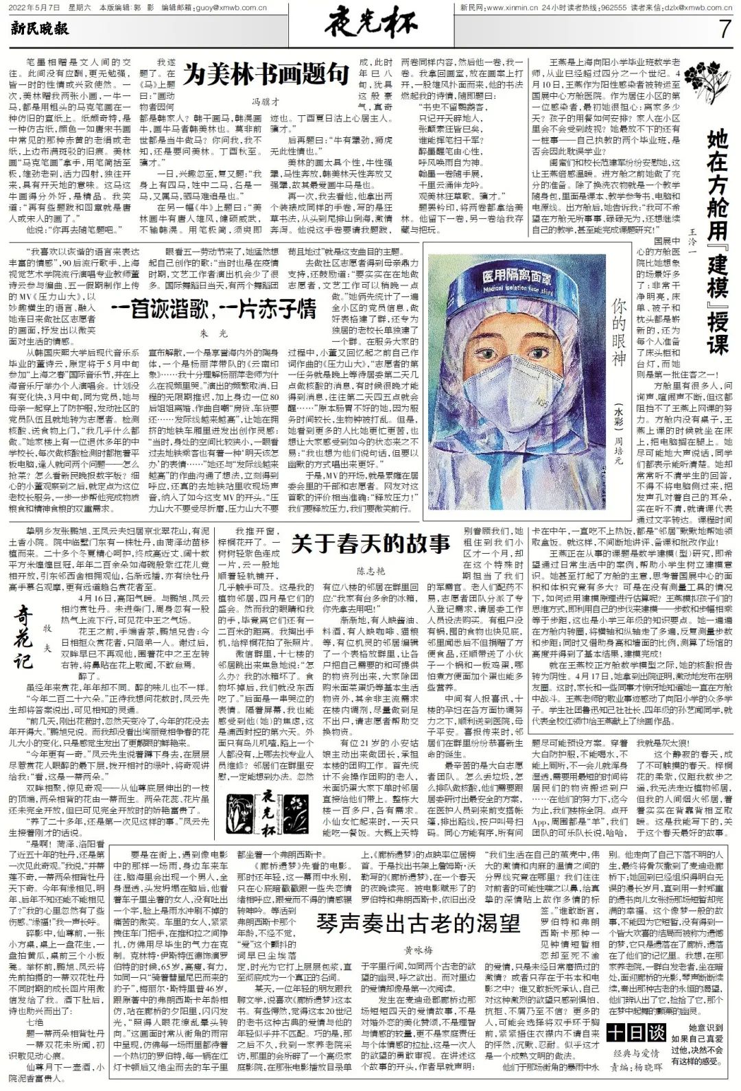 5月7日,《新民晚报》副刊《夜光杯》发表了冯骥才的《为美林书画题句》。