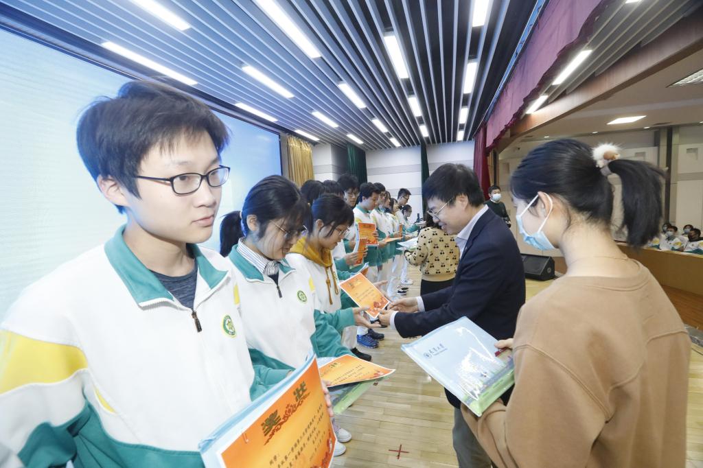 金东寒一行还参观了天津市实验中学校史馆,并作为特邀嘉宾为获得“学习之星”的实验中学优秀学生代表颁发奖状和天津大学文创纪念品。