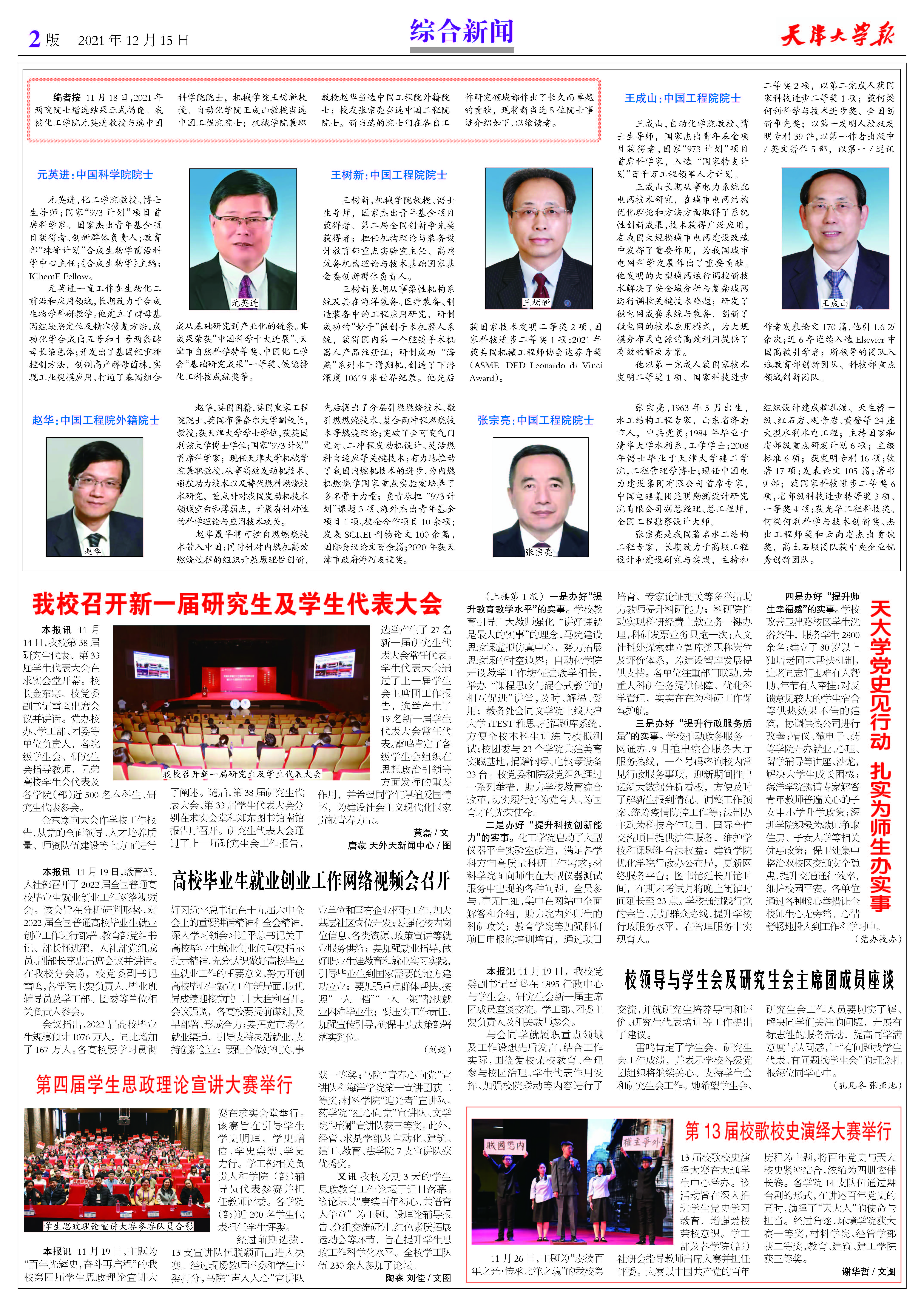 11月18日,2021年两院院士增选结果正式揭晓。我校化工学院元英进教授当选中国科学院院士,机械学院王树新教授、自动化学院王成山教授当选中国工程院院士;机械学院兼职教授赵华当选中国工程院外籍院士;校友张宗亮当选中国工程院院士。新当选的院士们在各自工作研究领域都作出了长久而卓越的贡献,现将新当选5位院士事迹介绍如下,以飨读者。