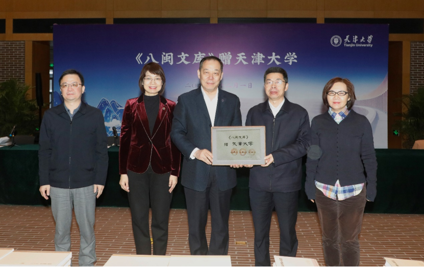肖贵新在捐赠仪式上发言。他表示,古籍包含着丰富的哲学社会科学思想,治国理政智慧,为人民认识世界、改造世界提供了重要的依据,也是中华文明和人类文明的重要组成部分。《八闽文库》是福建省第一次大规模系统化地全面调查整理出版省内历代产品的重大文化工作。他希望以此次赠书为契机,加强福建省与天津大学的文化交流,进一步推动闽文化的研究和传播,增加双方在文化、人才、科技等方面的合作。