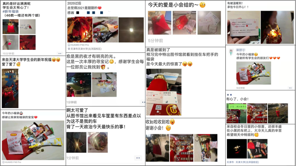 “疫情的风险依然存在,又赶上期末,很多同学面临着考试、升学、就业等重重压力。我们希望通过送福袋的方式,缓解大家的紧张和焦虑。”王浩天说。
