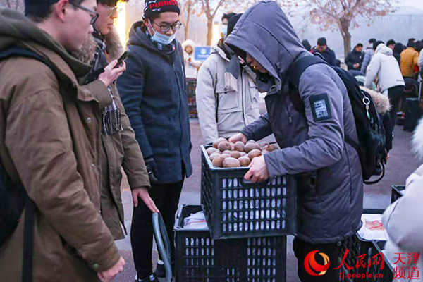 人民网天津12月14日电 12月12日,一年一度的天津大学水果工程——“水果文化节”如约而至。天大为近30000名在校学生免费发放时鲜水果。“水果大礼包”包括广西壮族自治区宁明县的红心火龙果、德保县的脐橙,新疆维吾尔自治区布尔津县的诺干奶酪和陕西省扶风县的猕猴桃等来自贫困地区的特色农产品。