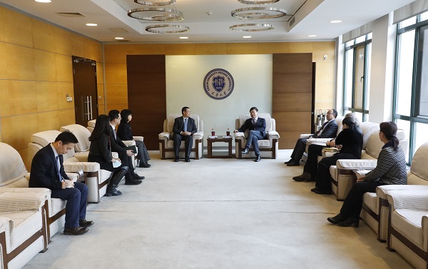 本站讯(记者 焦德芳 摄影 唐蒙)12月8日,科技部外国专家服务司副司长徐晧庆来校调研。天津大学校长金东寒在卫津路校区会见徐晧庆一行并举行座谈。副校长胡文平及国际处、药学院等单位负责人参加座谈。
