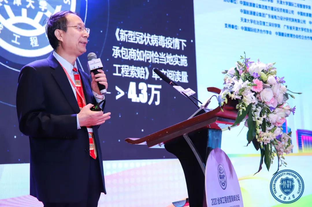 ▲天津大学国际工程管理学院副院长吕文学教授发布全球工程经营平台研究成果