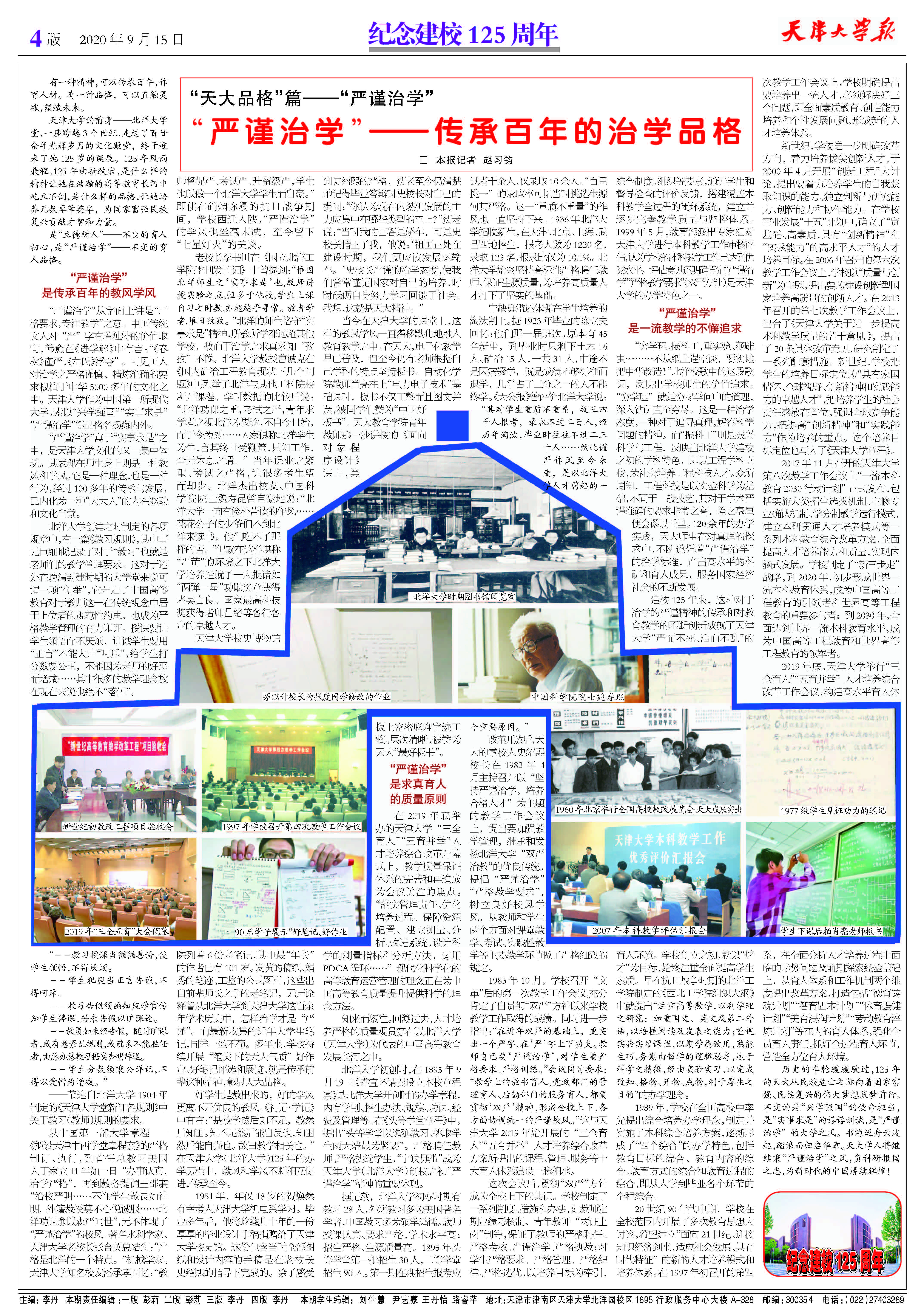 ●“天大品格”篇——“严谨治学” “严谨治学”——传承百年的治学品格