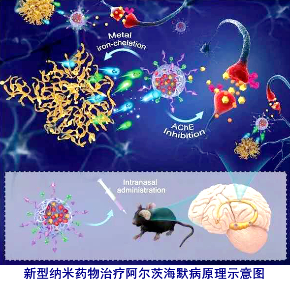 天津大学生命科学学院常津教授团队近年来致力于探索治疗阿尔茨海默病的新型纳米药物。他们将能有效抑制金属离子聚集的氯碘羟喹和调节乙酰胆碱失衡的多奈哌齐这两种药物“同时包封”在人血清白蛋白纳米颗粒内,再通过纳米颗粒表面修饰跨膜肽TAT和靶向制剂,以提高其入脑效率、投药准确性和脑内滞留能力。根据阿尔茨海默病小鼠实验结果显示,这种新型纳米药物有效改善了小鼠神经元形态学改变,挽救了小鼠记忆障碍,减缓了发病进程。