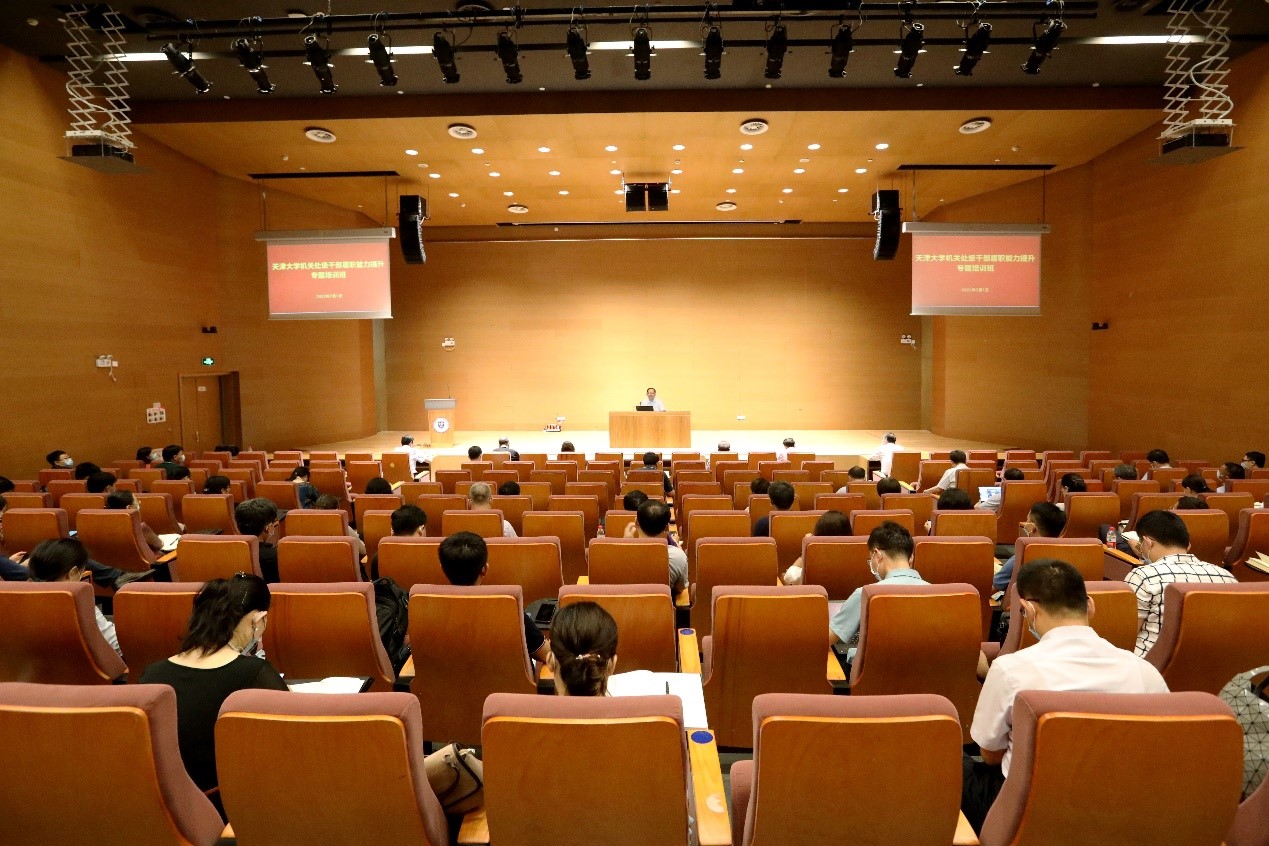 本站讯 为深入学习贯彻习近平新时代中国特色社会主义思想,学习贯彻天津市第十二次党代会精神,扎实推进“迎盛会、铸忠诚、强担当、创业绩”主题学习宣传教育实践活动工作,7月1日,天津大学机关处级干部履职能力提升专题培训班在北洋园校区郑东图书馆报告厅开班。校党委书记杨贤金以“学习习近平总书记的科学思想方法和工作方法”为题作开班报告暨“七一”专题党课。