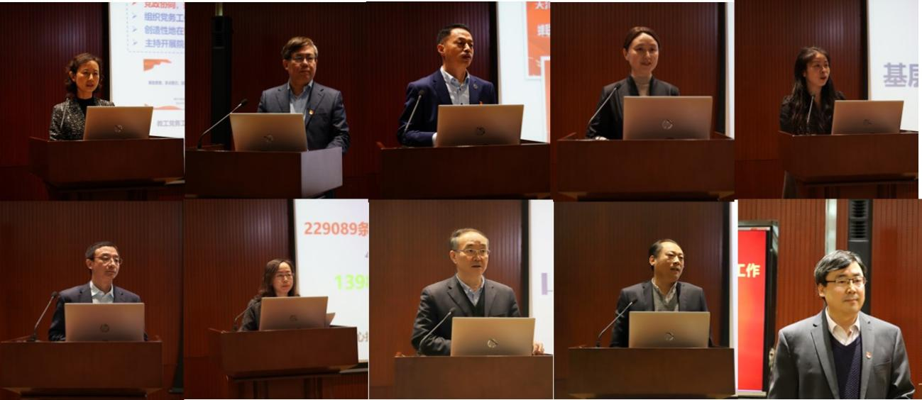 会上,微电子学院党委、建筑学院党委、化工学院党委、药物科学与技术学院党委、地球系统科学学院党委、医学部党委、远程与继续教育学院党总支、资产经营有限公司党委、内燃机研究所党委、期刊中心直属党支部10个党组织书记进行了现场述职,其余院级党组织进行了书面述职。杨贤金以“一述一评”的方式对现场述职的书记逐一点评,明确指出存在问题和下一步努力方向。与会人员进行了现场测评。