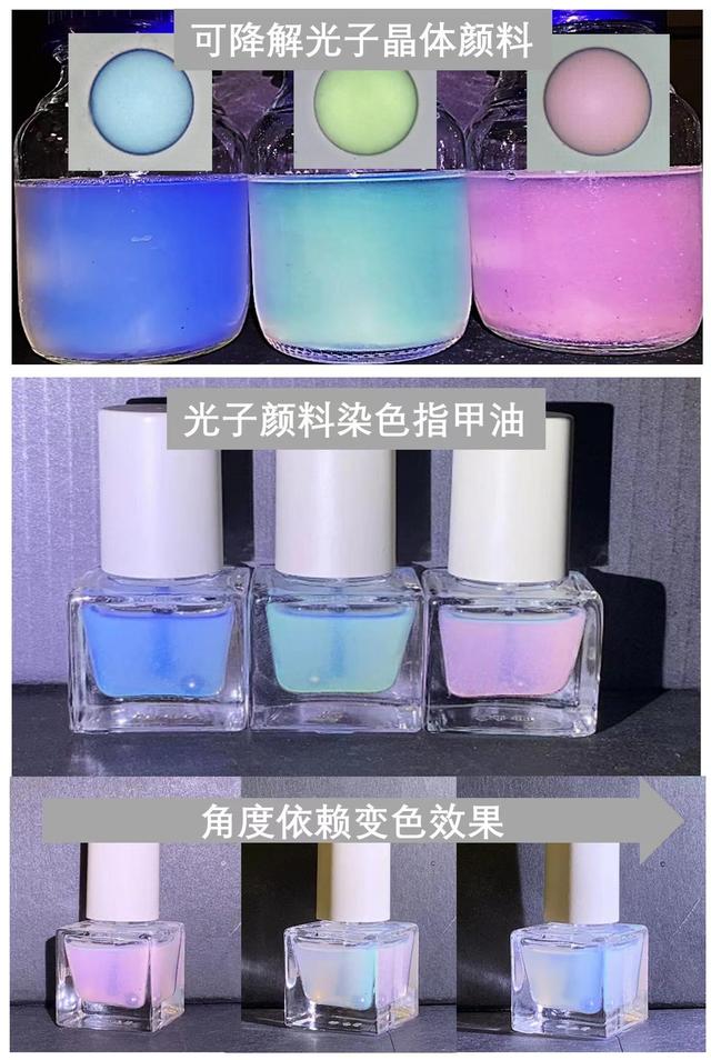 “此类新型光子颜料有望广泛替代化妆品及个人护理用品中的非降解塑料微珠和人工合成色素,比如用于染色指甲油、替换眼影等彩妆产品中的色素、作为紫外线反射剂替换防晒霜中的纳米氧化钛等。”据宋东坡教授介绍,该项目得到了国家重点研发计划和国家自然科学基金的支持。“这种新型光子颜料排入水体后能在几个月内自发降解成无毒害的乳酸等,不会对水生生态系统造成负面影响,将在很大程度上解决化妆品使用带来的环境污染问题。”