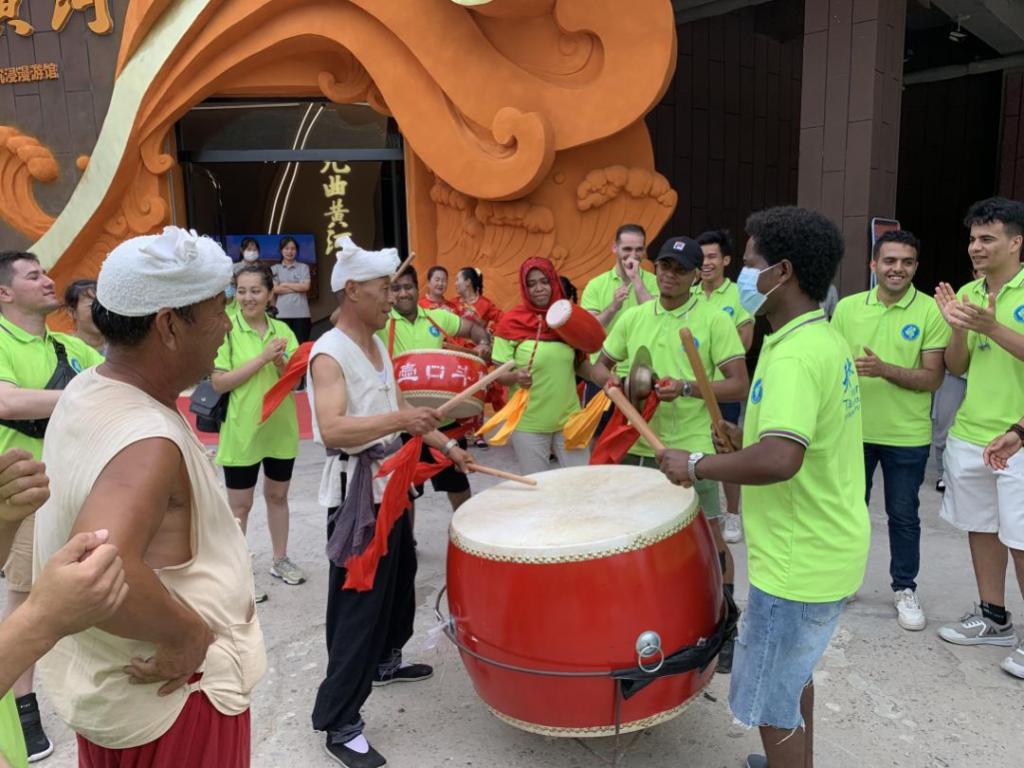“快过来看呦,这里有精彩的表演!”不知谁喊了一句,留学生们纷纷从河岸边跑过去,想要一探究竟。原来是当地的村民纷纷穿上民族服装,敲锣打鼓,跳起了秧歌。在背后瀑布群的衬托下,气势极为壮观。留学生们也被他们的氛围感染了,逐渐加入了跳舞的队列,一起载歌载舞,感受陕北的民族风情。