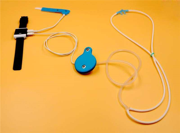 天津大学医学工程与转化医学研究院联合企业攻关研发出“可穿戴式组合体征智能监测系统”。从外观上看,这套系统的硬件模块是一组能佩戴在身体各处的轻便检测仪,患者穿戴后可以正常活动。这些检测仪可实时监测出患者血氧含量、呼吸频率、心跳速度等生理指标,还可以实时提取患者体位变化以及咳嗽带来的气流阻力变化。监测数据可通过蓝牙传输至手机App,并通过手机传输至云端系统,系统能够集合临床诊断原则,提取出呼吸疾病相关数据,初步判断患者的病情状态与变化趋势。这样,无论患者身处医院、居家或留观点,医生都能在办公室远程实时了解患者病情发展态势。