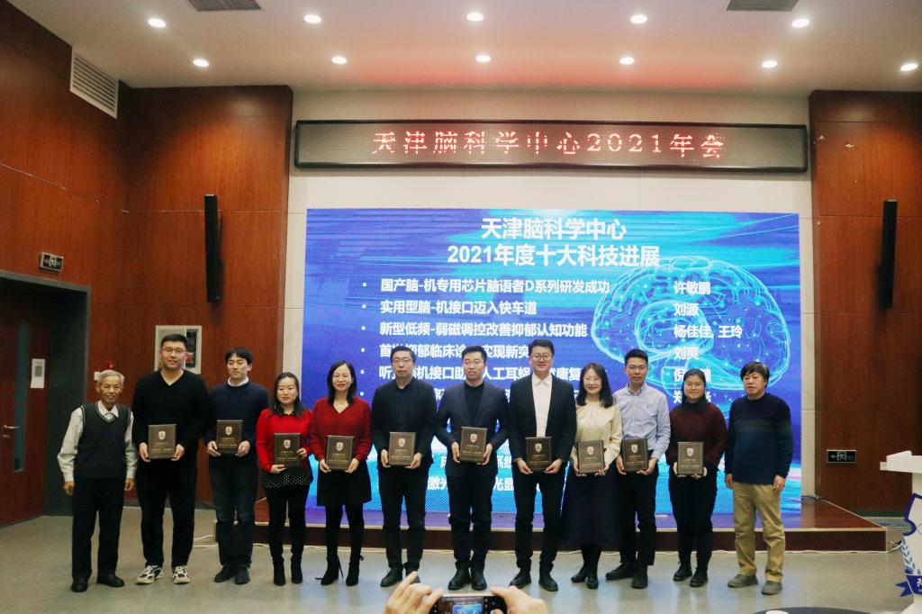 大会首先公布了天津脑科学中心2021年度遴选产生的“十大科技进展”,冷希岗和万柏坤为获奖成果的教师代表颁奖。