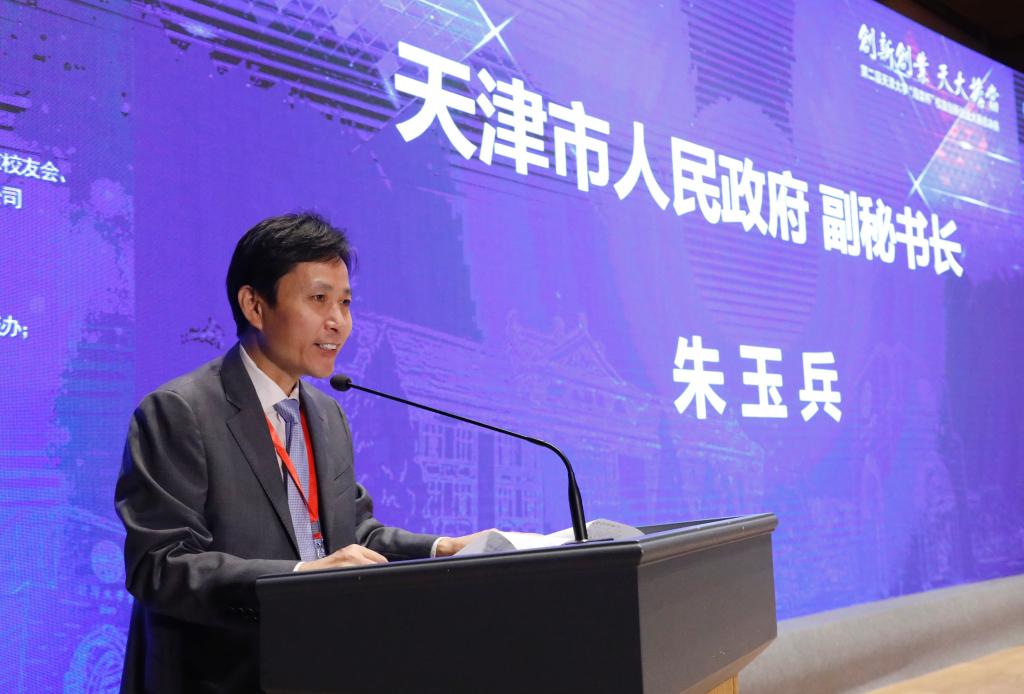 朱玉兵在会议致辞中指出天津市委市政府认真贯彻落实习近平总书记关于科技创新的重要思想,提高核心创新能力,推动经济高质量发展。天津市大力发展新创产业,抢抓新机遇,引入新动能,形成了完整创新产业体系,具有较强的产业基础和创新资源。天津大学此时召开创新创业大赛,选取优秀科研项目,与天津的城市功能定位、产业发展方向非常吻合。今后,天津各部门将营造良好环境,提升配套服务能力,帮助参赛项目在天津落地生花、发展壮大。