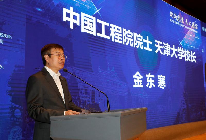 金东寒在致辞中指出,当前正是创新创业的最好时期,天大人应趁此东风大展宏图,扎根中国、服务中国,坚持自主和开放的辩证统一,攻克关键核心技术,掌握发展主动权。他结合个人经历与校友共勉,强调在坚持自强不息奋斗的同时必须要具备放眼世界的视野和格局,注重开放合作、坚持互利共赢。通过打造企业家、政府、大学、投资人、创业导师多元协同参与的生态圈,繁荣创新创业生态,持续推动产业界、科技界、投资界的互通融合,共享创新发展机遇,共建世界一流大学。
