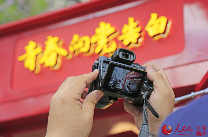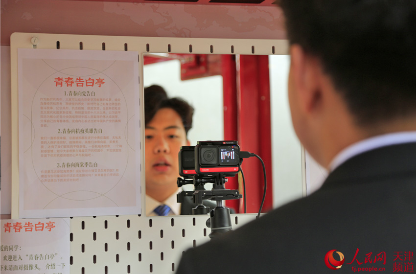 “青春告白亭”里,青年代表面对镜头向中国共产党建党百年致以美好祝福。人民网 崔新耀摄