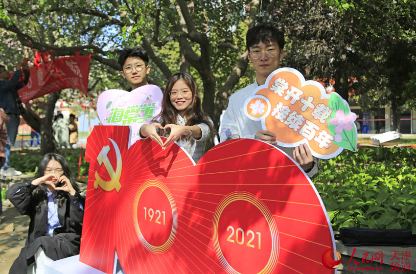 人民网天津4月3日电 (崔新耀)正是一年春好处,上千株美丽的海棠在天津大学校园竞相绽放。4月3日,天津大学以“绽放·新百年”为主题举办海棠季游园活动,年轻的师生用丰富多彩的文化活动礼赞建党百年,用青春向党告白。