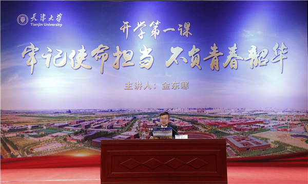 本站讯(采访整理 赵习钧 摄影 唐蒙)9月16日,天津大学2020级新生“开学第一课”在北洋园校区求实会堂开讲。中国工程院院士、天津大学校长金东寒为2020级各学院新生代表讲授开学第一课,寄语新一代天大人“牢记使命担当、不负青春韶华”,引起同学们深入思考和热烈反响。