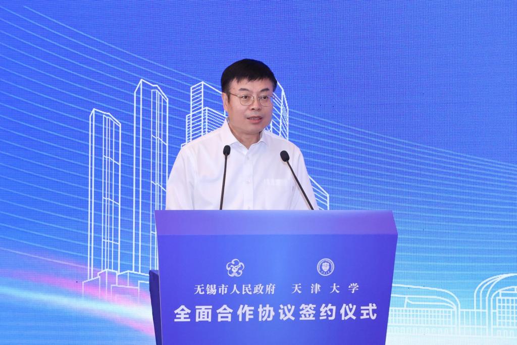 金东寒感谢无锡市委市政府多年来对天津大学事业发展的关心和支持。他说,天津大学和无锡前期已建立了良好的合作基础和深厚友情,彼此都有加强合作实现共赢的目标追求,学校的学科布局与无锡市的产业布局十分契合,双方有基础、有条件、有责任推动合作向纵深发展。此次市校全面合作协议的签署,既是市校双方贯彻落实习近平总书记关于强化国家战略科技力量、支撑高水平科技自立自强重要指示精神的有力举措,也是统筹校地合作创新资源、引领区域产业经济发展、服务长三角一体化国家战略的有益探索。天津大学一直以来高度重视服务国家和地方经济社会发展,下一步将加快推动合作项目落地见效,一如既往地面向无锡经济建设主战场,充分发挥高校的人才和智力优势,加速培育一批专精特新的领军企业,助力无锡经济社会高质量发展。