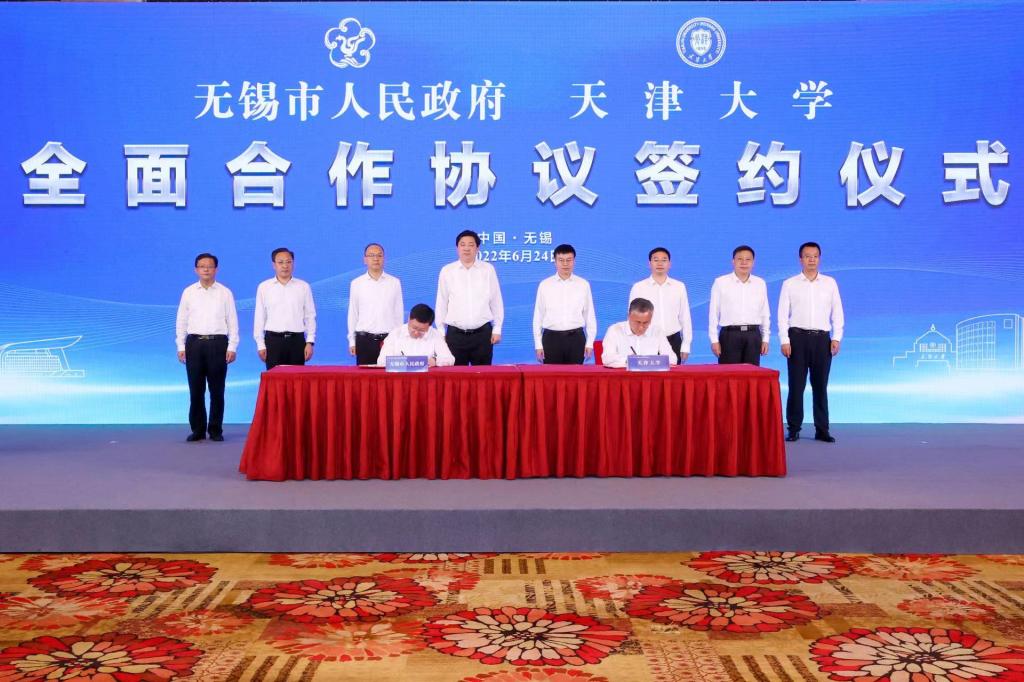 本站讯6月24日,天津大学与无锡市人民政府全面合作协议签约仪式举行。无锡市委书记杜小刚参加有关活动。中国工程院院士、天津大学校长金东寒,无锡市市长赵建军出席签约仪式并致辞,共同为“天津大学无锡研究院”揭牌。天津大学党委常委、副校长郑刚,无锡市市领导周文栋、吴建元参加活动。无锡市政府秘书长陈寿彬主持。